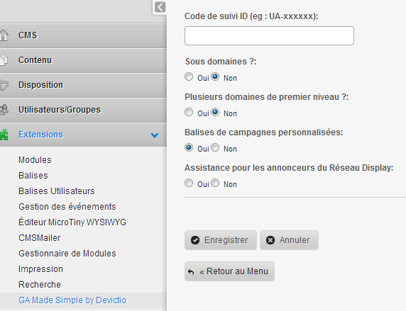 - Paramètrage CMS Made Simple